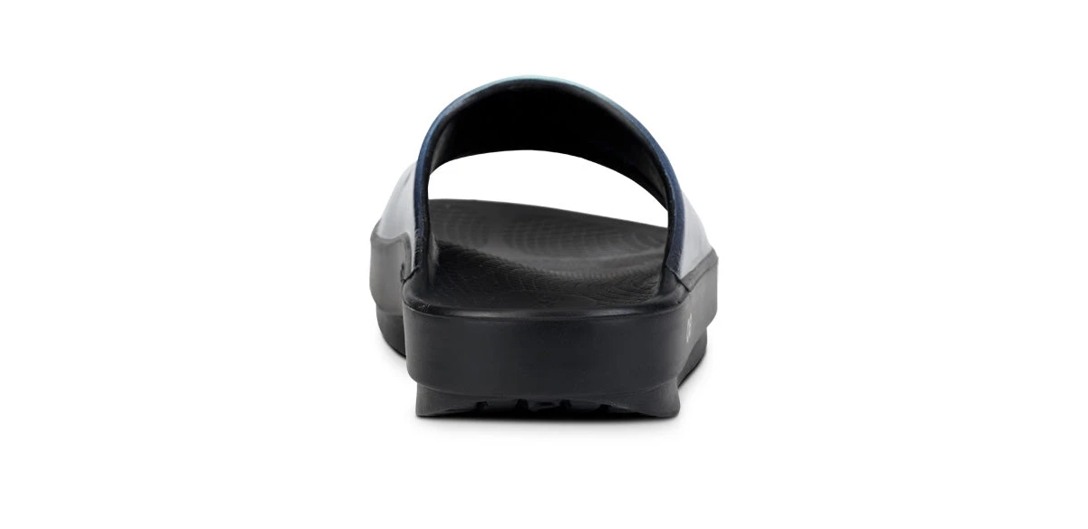 Luxe: Vibrant treatments and prints bring some extra fun and expression to OOFOS’ classic slide silhouette.