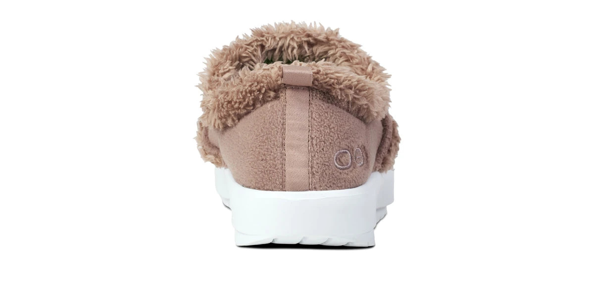 The OOcoozie provides the perfect blend of cushion and stability for both indoor lounging and quick errands out.Β The upper is constructed with a warm vegan sherpa material that is both recyclable and machine washable.Β Like all OOFOS products, it has our unique one-of-a-kind OOfoamβ’ technology that absorbs impact, so your body doesnβt have to.Β Add in the patented footbed design that cradles and supports arches and youβll recover faster.Β Active recovery with the soft, cozy warmth you desire in a versatile hygge style.