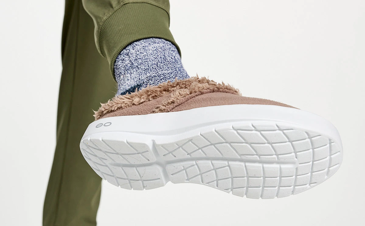 The OOcoozie provides the perfect blend of cushion and stability for both indoor lounging and quick errands out. Now in a mule style with an easy, no fuss, slip-on design for your on-the-go lifestyle. The upper is constructed with a warm vegan sherpa material that is both recyclable and machine washable. Like all OOFOS products, it has our unique one-of-a-kind OOfoam™ technology that absorbs impact, so your body doesn’t have to. Active recovery with the soft, cozy warmth you desire in a versatile hygge style.
